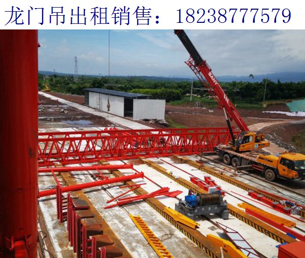 龍門吊拆除施工準備:施工場地事先清理,場地須開闊,無干擾施工機械的障礙物,吊車工作區域須確保地基堅實可靠,必要時用專用墊板鋪墊。施工人員須熟悉施工現場,熟悉本方案,技術人員做好重要施工工序的技術和安全交底。對配合拆除吊車及其它配合機具進行檢查,所有的安全裝置須齊全可靠,并無機械缺陷。對所有用于拆除作業的工具進行檢查:作業中使用的安全帶、速差保護器、保險繩應檢驗合格,保證安全設施安全。